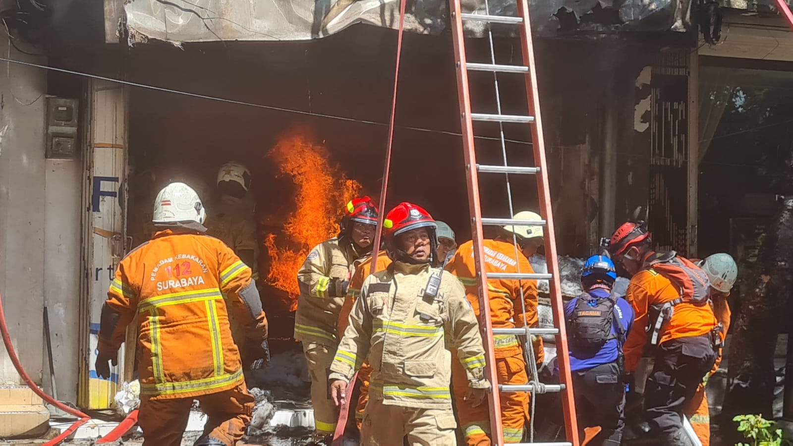 “Bahan bahan yang mudah terbakar dalam toko itu membuat api mudah membesar. Dan saat ini kita melakukan pemadaman dan mendatangkan semua unit mobil pemadam kota Surabaya di lokasi kejadian,” ujar petugas pemadam kebakaran.