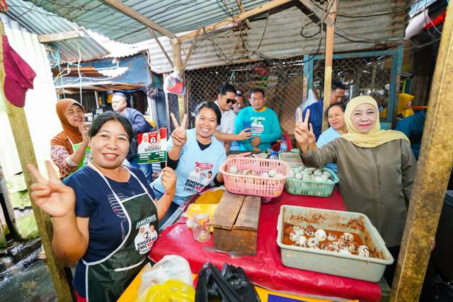 “Maju terus bu Khofifah, kami pilih nomor 2. Ibu jadi Gubernur lagi,” ujar salah satu pedagang.