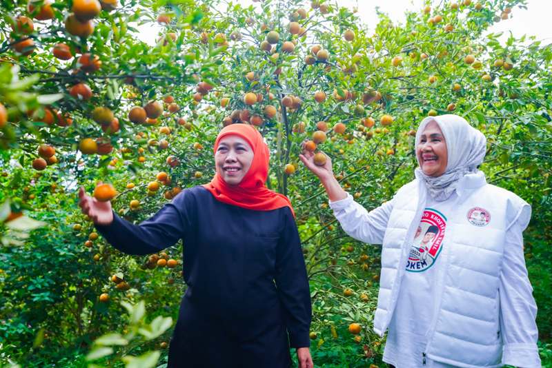 Itu Khofifah sampaikan usai hadir di tengah-tengah panen buah jeruk siam madu yang ada di Desa Supit Urang, Kecamatan Karang Ploso, Kabupaten Malang.