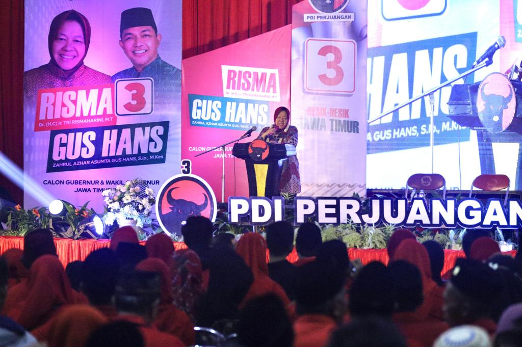 Risma mengatakan bahwa Pilkada kali ini akan menentukan nasib warga Jawa Timur untuk lima tahun ke depan. “Sampaikan ke rakyat supaya tidak salah pilih. Kami akan bekerja memastikan pendidikan dan kesehatan gratis semua. Di Jember akan saya bangun fasilitas kesehatan untuk penyakit mematikan seperti kanker, gagal ginjal, jantung,” ujarnya.