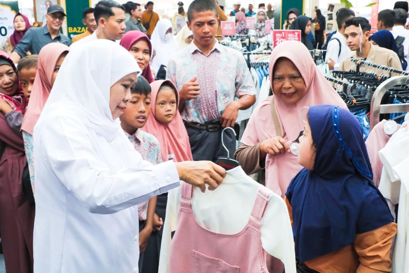 Bahkan dalam kesempatan itu, Gubernur Khofifah berinteraksi langsung dan sempat mencoba membantu salah satu murid untuk memilihkan pakaian dan mencari ukuran yang cocok.