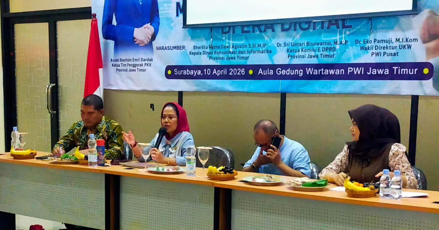 Hal ini dikatakan Ketua Komisi E DPRD Jatim Sri Untari Bisawarmo saat menjadi narasumber dalam acara seminar bertajuk “Peran Perempuan Dalam Mengakses dan Menyebarkan Informasi di Era Digital” digelar dalam rangkaian peringatan Hari Pers Nasional (HPN) dan HUT ke-80 Persatuan Wartawan Indonesia (PWI), yang digelar Ikatan Keluarga Wartawan Indonesia (IKWI) Jatim di Aula Gedung Wartawan, PWI Jatim, Jumat (10/04/26).