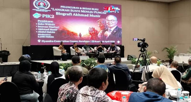 Surabaya, MercuryFM – Ketekunan, kesabaran, dan kekuatan doa dalam menapaki karier dari titik paling bawah hingga mencapai posisi puncak. Hal inilah yang menjadi potret perjalanan Ketua Umum PWI Pusat Akhmad Munir, yang dipaparkan dalam bentuk buku “Langkah Sunyi Menuju Puncak” yang ditulis jurnalis Antara Abdul Hakim yang diluncurkan di Dyandra Convention Center Surabaya, Kamis (16/04/26).