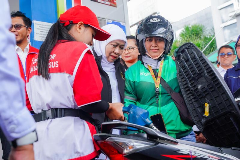 Kbofifah menjelaskan, program berbagi BBM gratis ini dilaksanakan di sejumlah titik agar semakin banyak pengemudi ojol yang dapat merasakan manfaatnya, terutama dalam membantu meringankan biaya operasional harian.